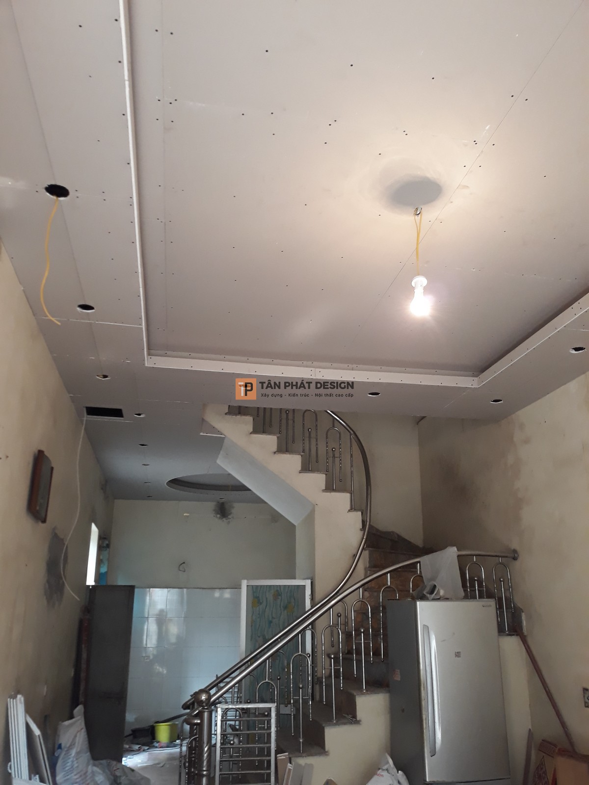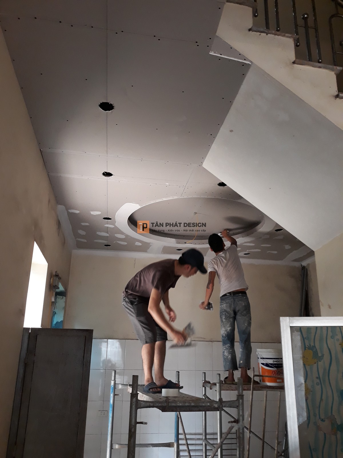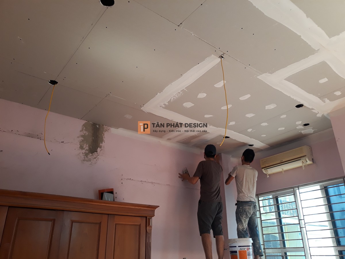 - Thi công thạch cao phòng khách, bếp và phòng ngủ.
