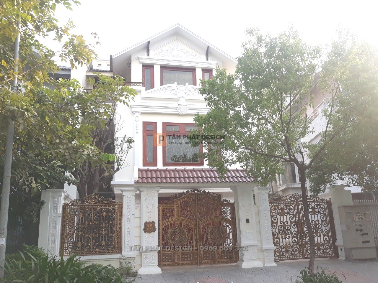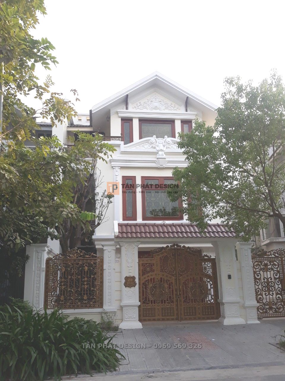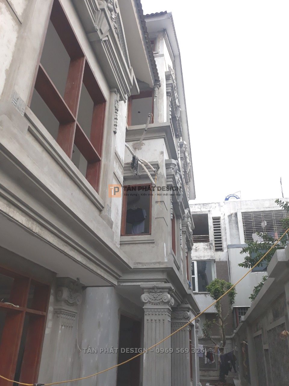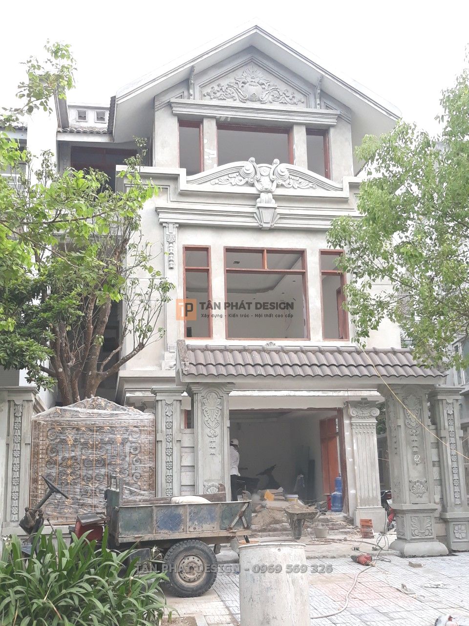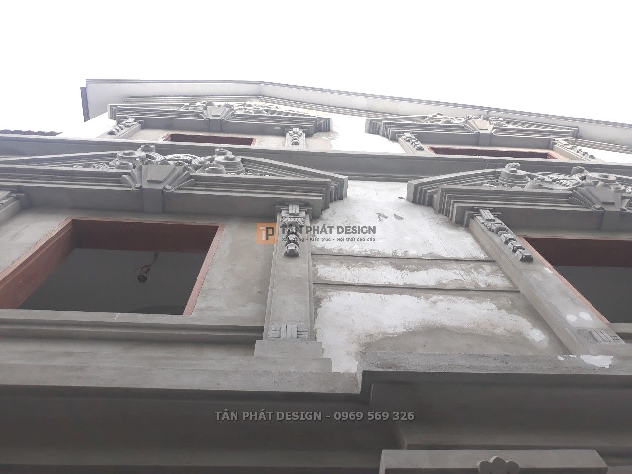 Nét nổi bật của các công trình xây dựng phong cách Cổ điển là loạt phào chỉ và phù điêu đắp trang trí. Để đảm bảo độ bền đẹp, Tân Phát đã trực tiếp đắp những phào chỉ trang trí và phù điêu bằng xi măng lên công trình thay vì mua sẵn mẫu bán trên thị trường.