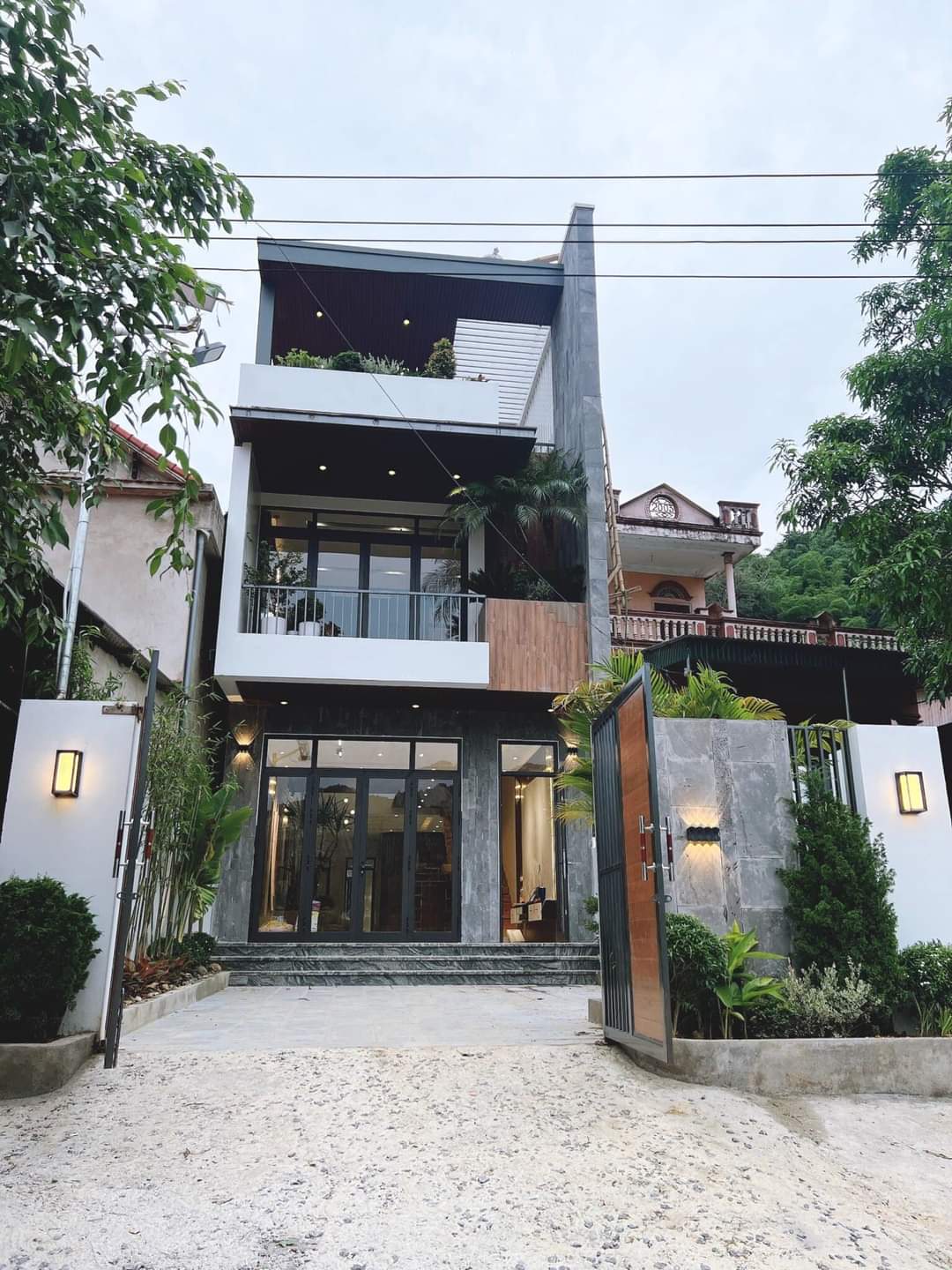 Mặt tiền của công trình nhà 3 tầng công nghệ sàn UBOT tại Gia Lâm.